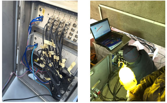 苏北灌溉总渠大桥为部分预应力混凝土组合箱梁桥。2015年12月,江苏京沪高速公路有限公司组织各方为苏北灌溉总渠大桥右幅中跨跨中安装了长期性能监测系统,为了考察桥梁的基本力学性能,选择典型桥跨,布置相应的动应变、动位移、钢应变等测点,组成箱梁健康监测系统,监测部分预应力混凝土箱梁在实际运行荷载作用下的基本力学性能,为类似桥梁的运营养护和维修加固提供有益参考和示范。 系统监测的物理量有:动应变、动位移、钢应变。 数据采集设备共有2组,共30个测点,10个动位移测点,10个钢应变测点,16个混凝土应变测点。各组采集设备通过以太网通讯,通过光纤将数据传输至远程监控室。