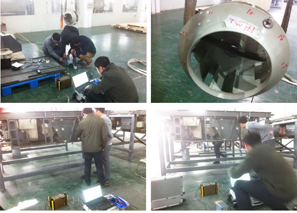 2014年4月,应西南交通大学的邀请,使用TZT5916对无锡某集团生产的动车风机叶轮部件以及整个箱体进行固有特性测试及模态分析。