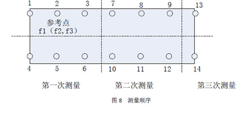 其中f1,f2,f3 为参考点的数据测点号,参考点位置与测点号2 点的位置重合。
